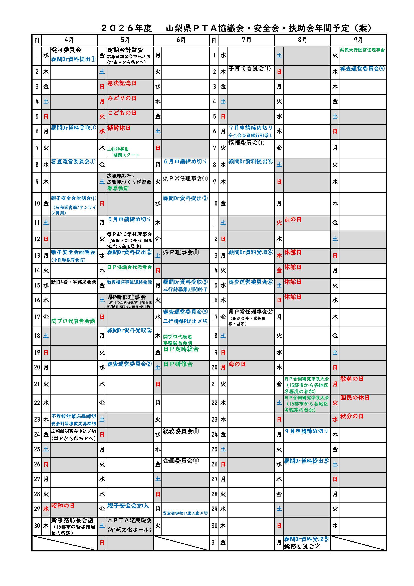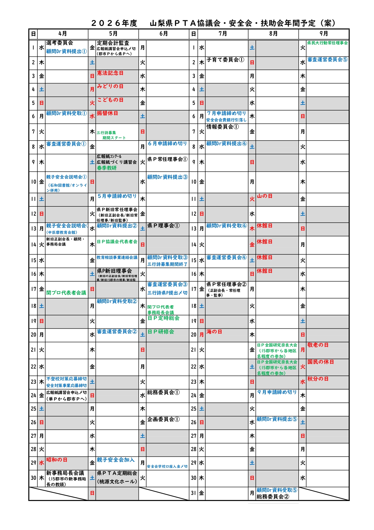 - (1)「山梨県PTA大会」の開催