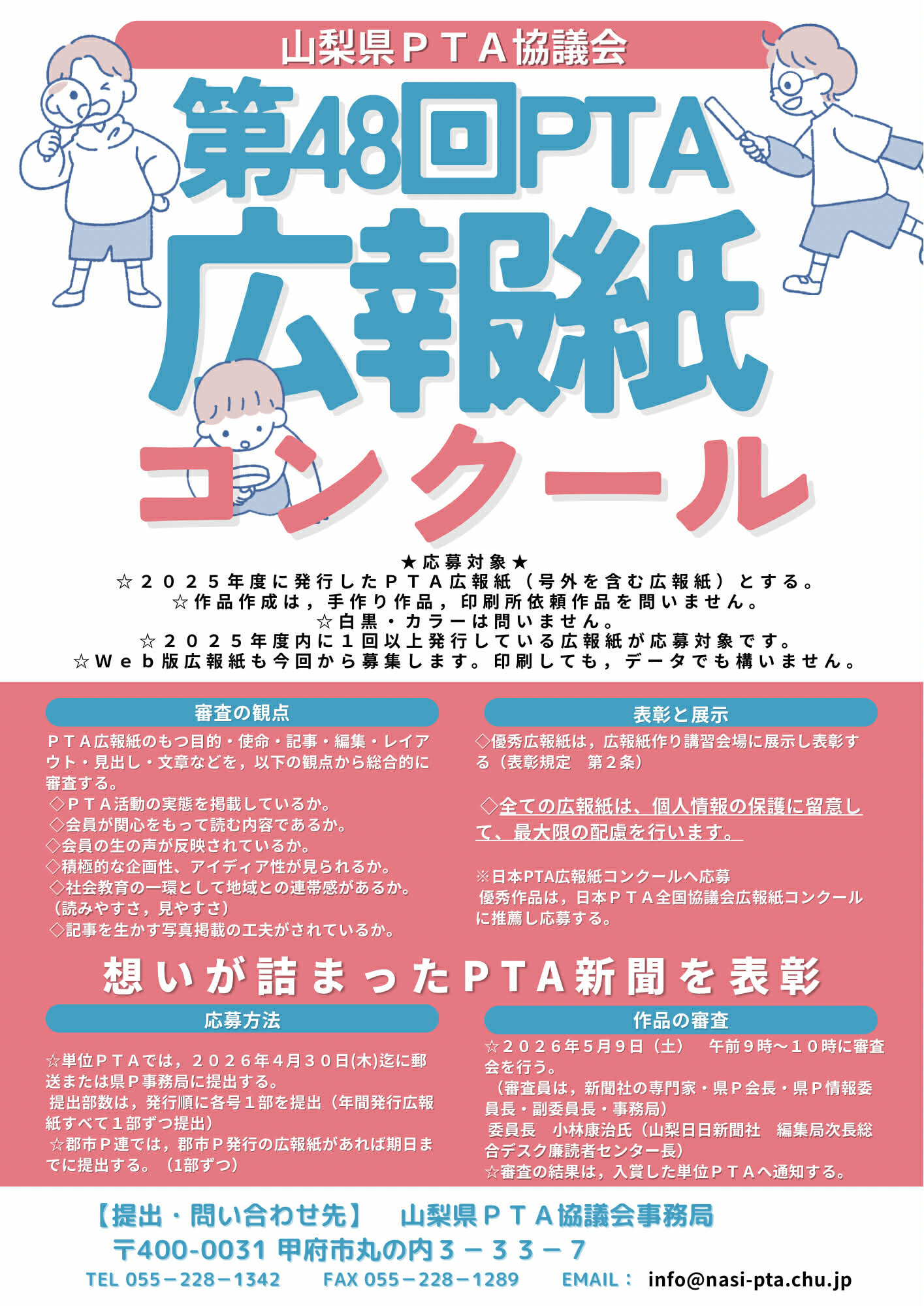 山梨県PTA協議会では、以下の通り第48回PTA広報紙コンクールを開催いたします。